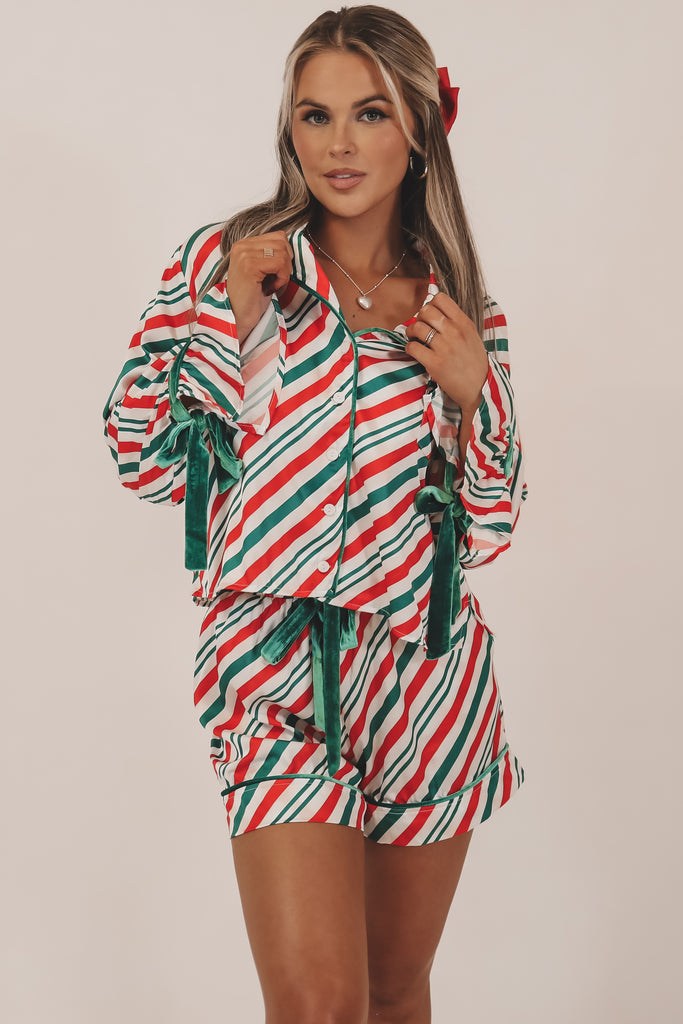 Oh Snowy Night Candy Cane Striped Satin Christmas Pajama Set PRE-ORDER