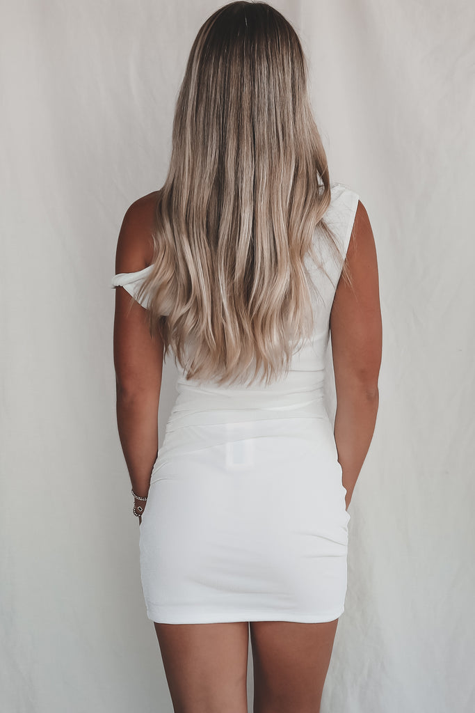 DEAL Twist And Shout Mesh Off The Shoulder Mini Dress