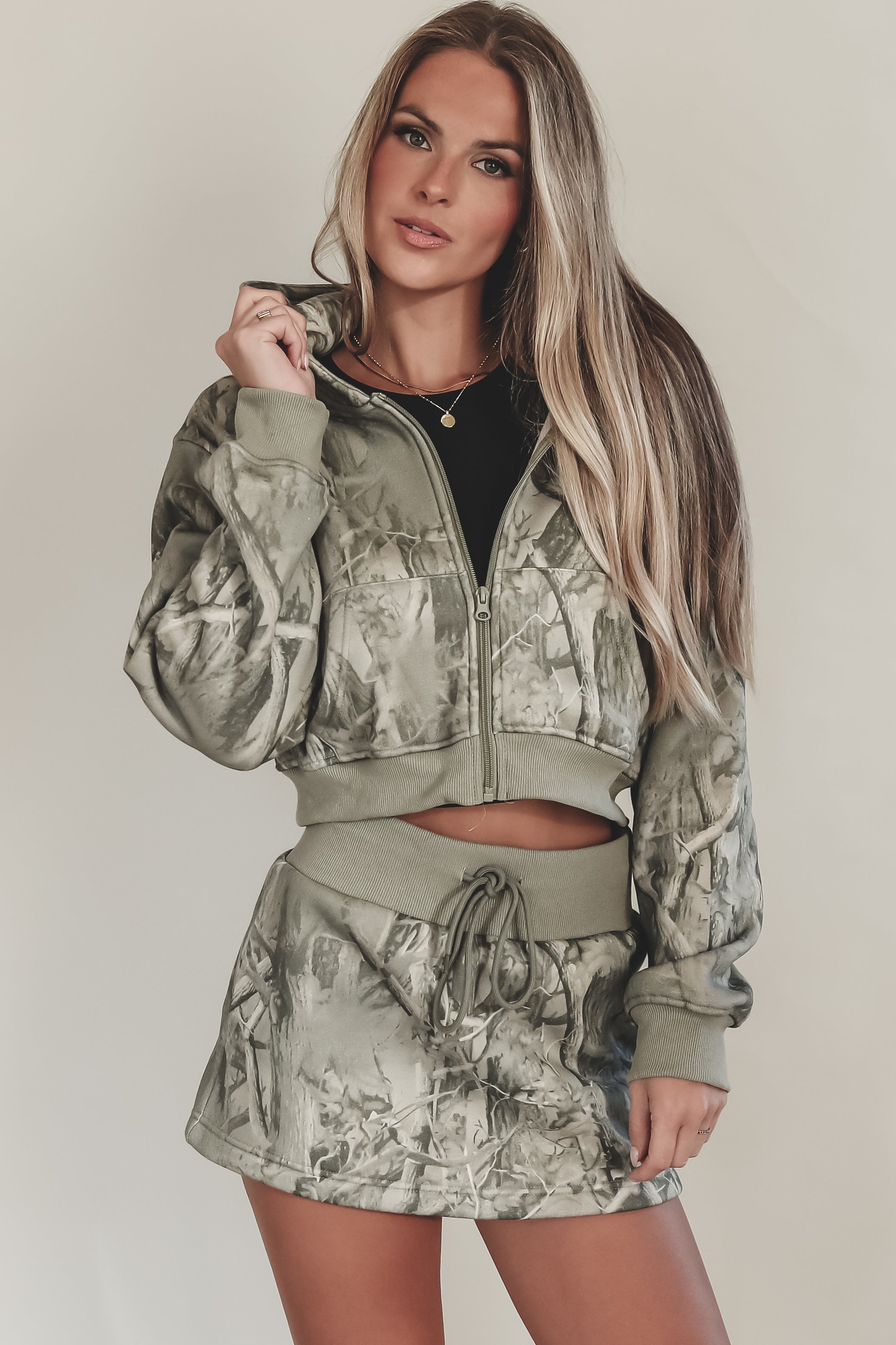 In this cutie cropped camo mini skort? Yeah you’re definitely someone’s airport crush ;) This cropped camo zip up goes perfectly with our Airport Crush Camo Cropped Zip Up Jacket.