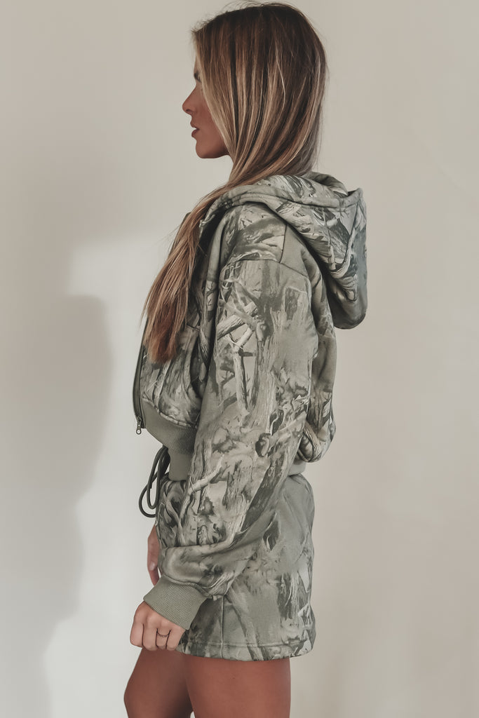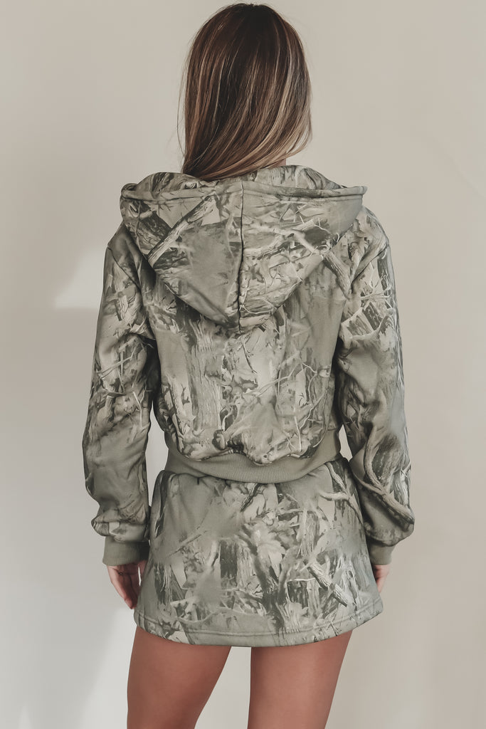 Airport Crush Washed Camo Cropped Zip Up Jacket