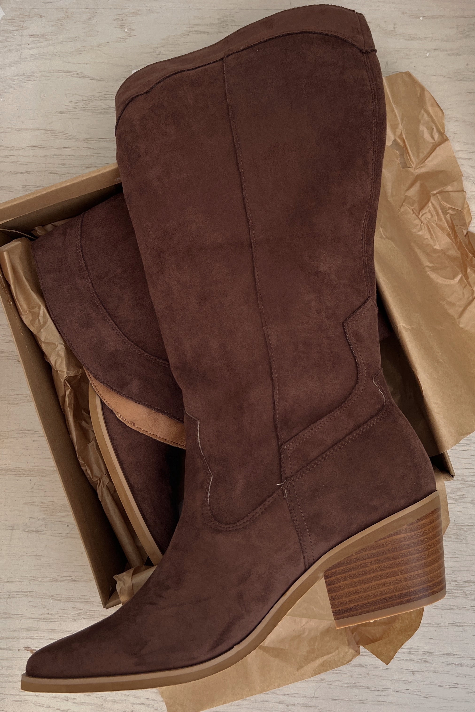 PRE-ORDER Ships 10/27 Florence Tall Suede Boot Wooden Heel Wide Calf Western Boots