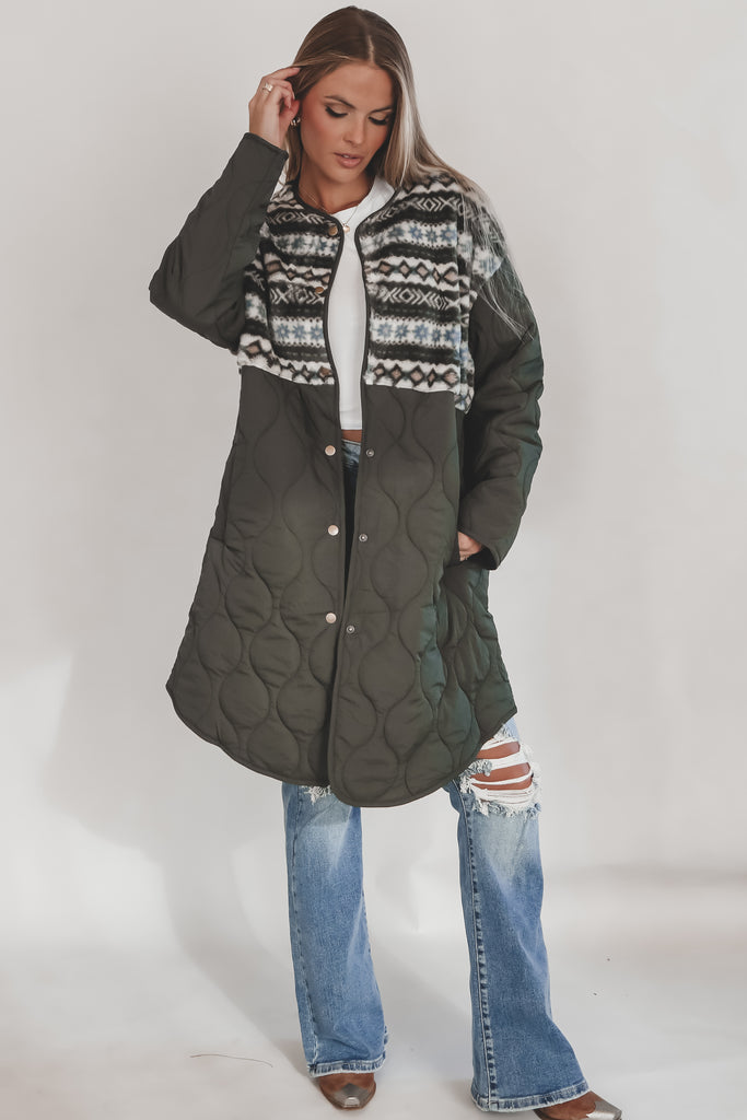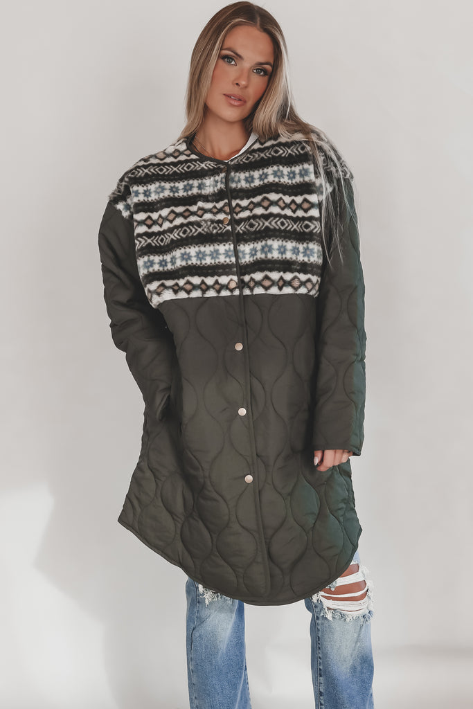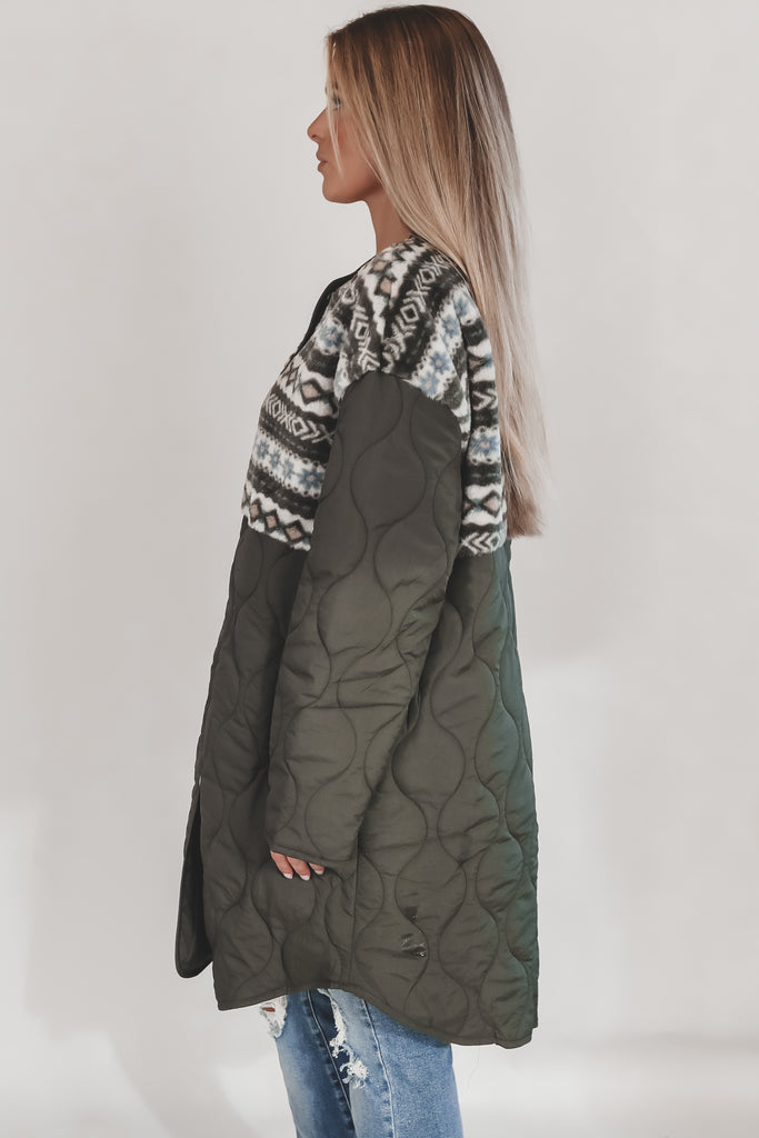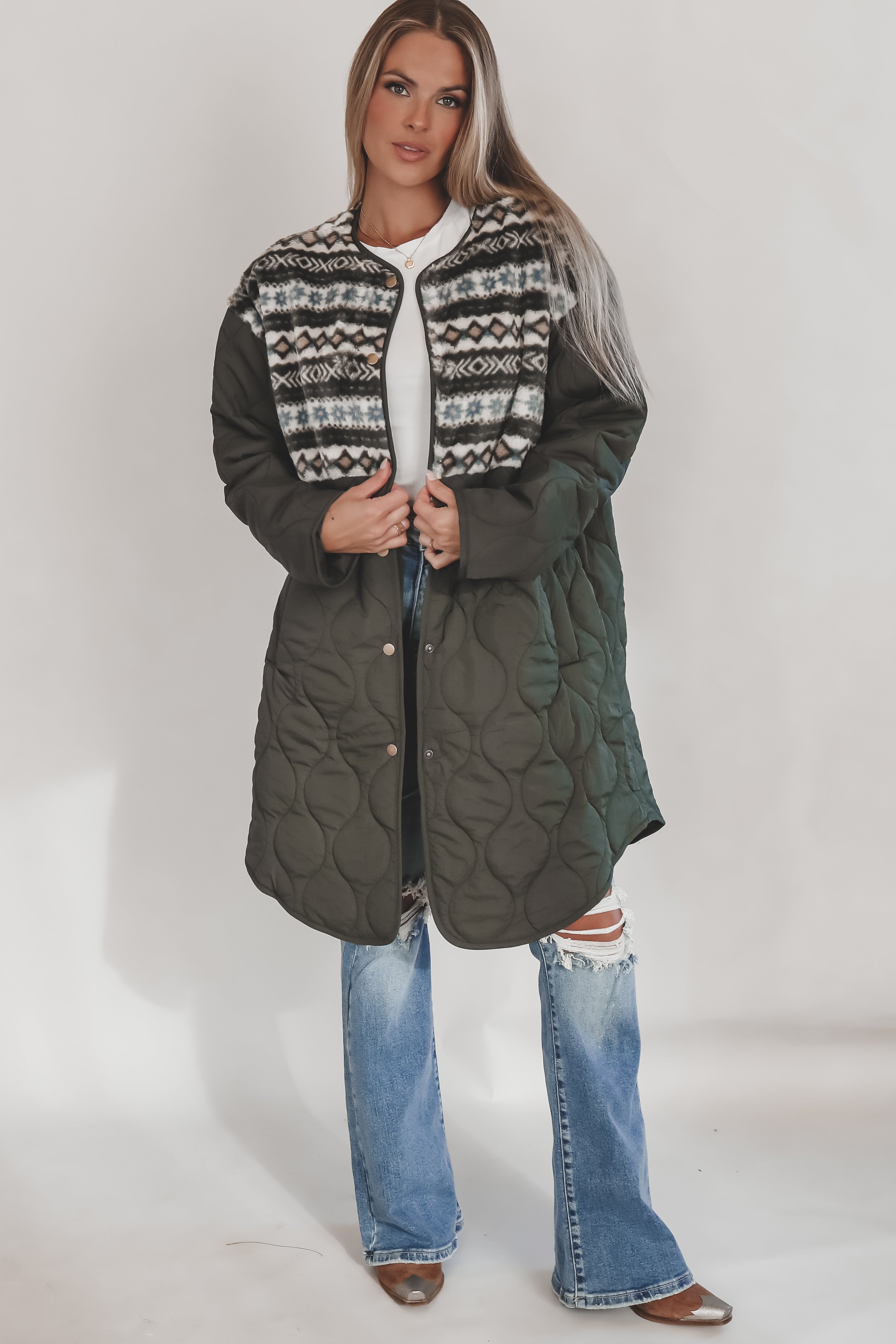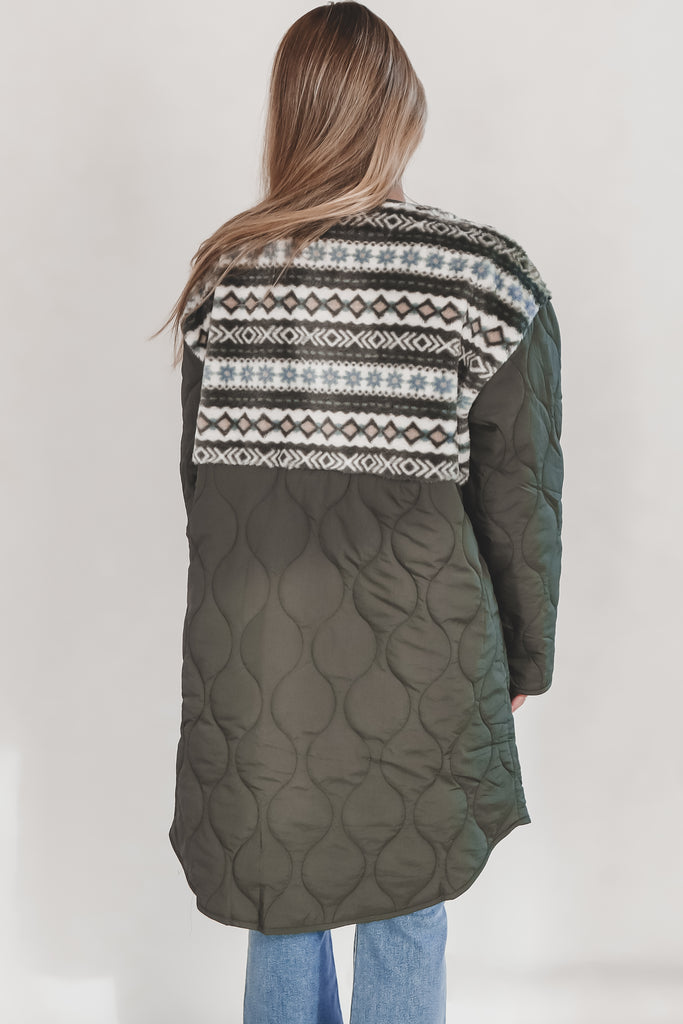Layering Weather Long Olive Green Sherpa Puffer Coat