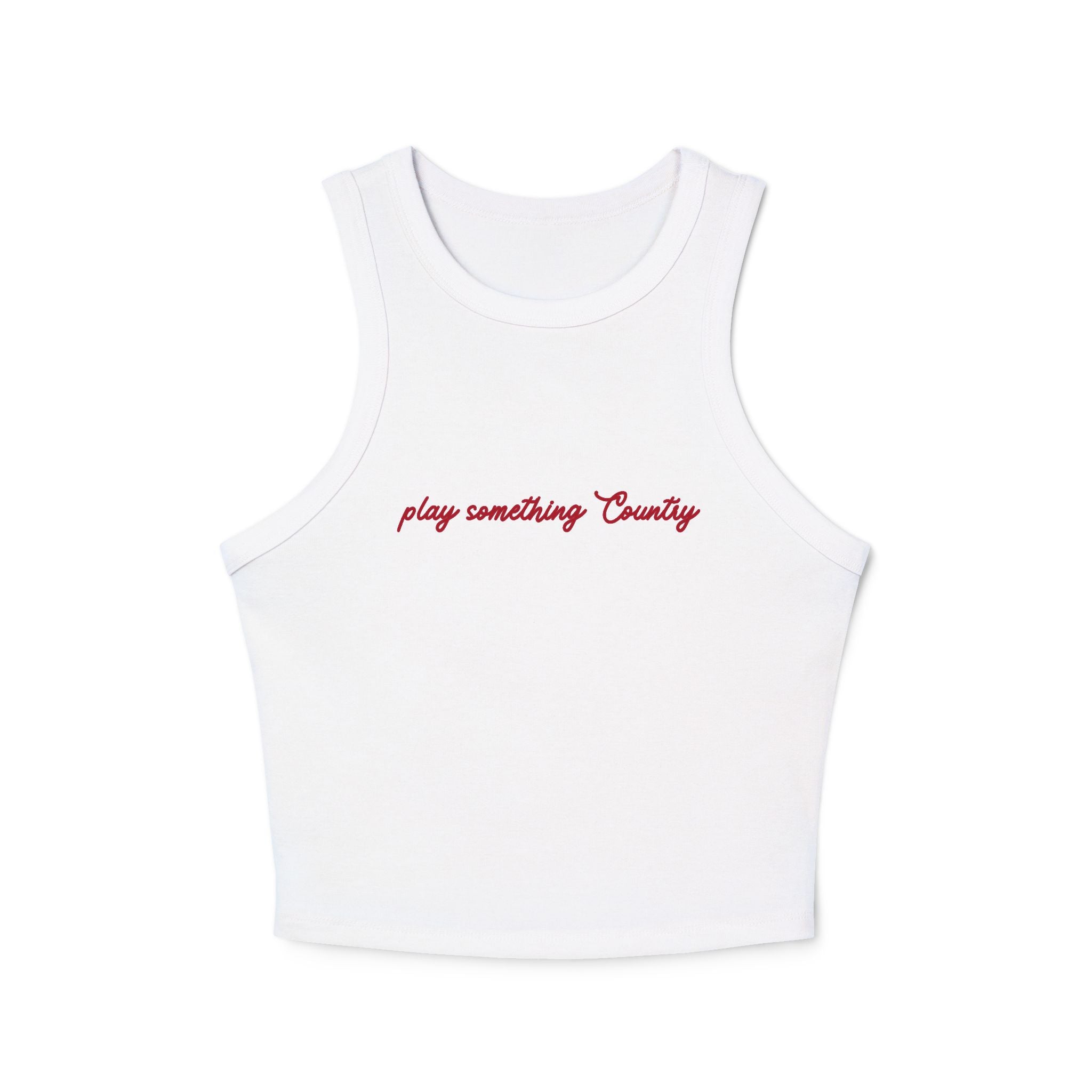 Lightweight and clean-lined, this micro rib racer tank brings a quietly confident edge to everyday wear. The fitted, mid-length cut and high neck create a modern silhouette that layers easily under jackets or stands strong on its own. Soft Airlume cotton blended with polyester and a subtle 1x1 micro rib texture give it gentle stretch and a smooth hand. The tear-away label keeps the neck comfortable, while the crisp DTF print holds color against the fabric for a polished finish. Wear it when you want a minimal piece that still reads intentional—slim, breathable, and ready to move with your day.