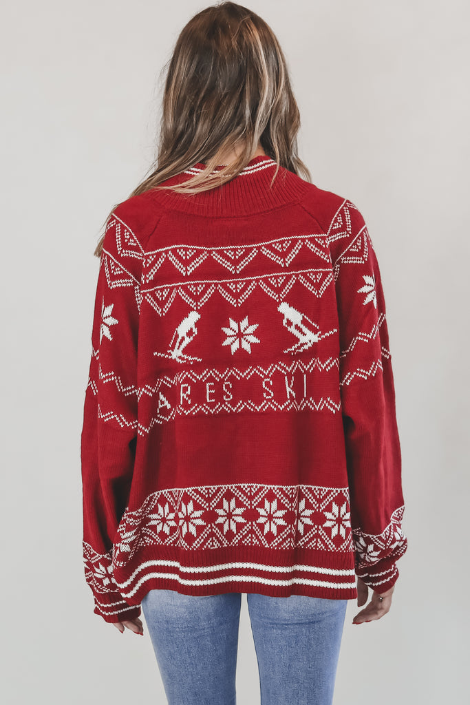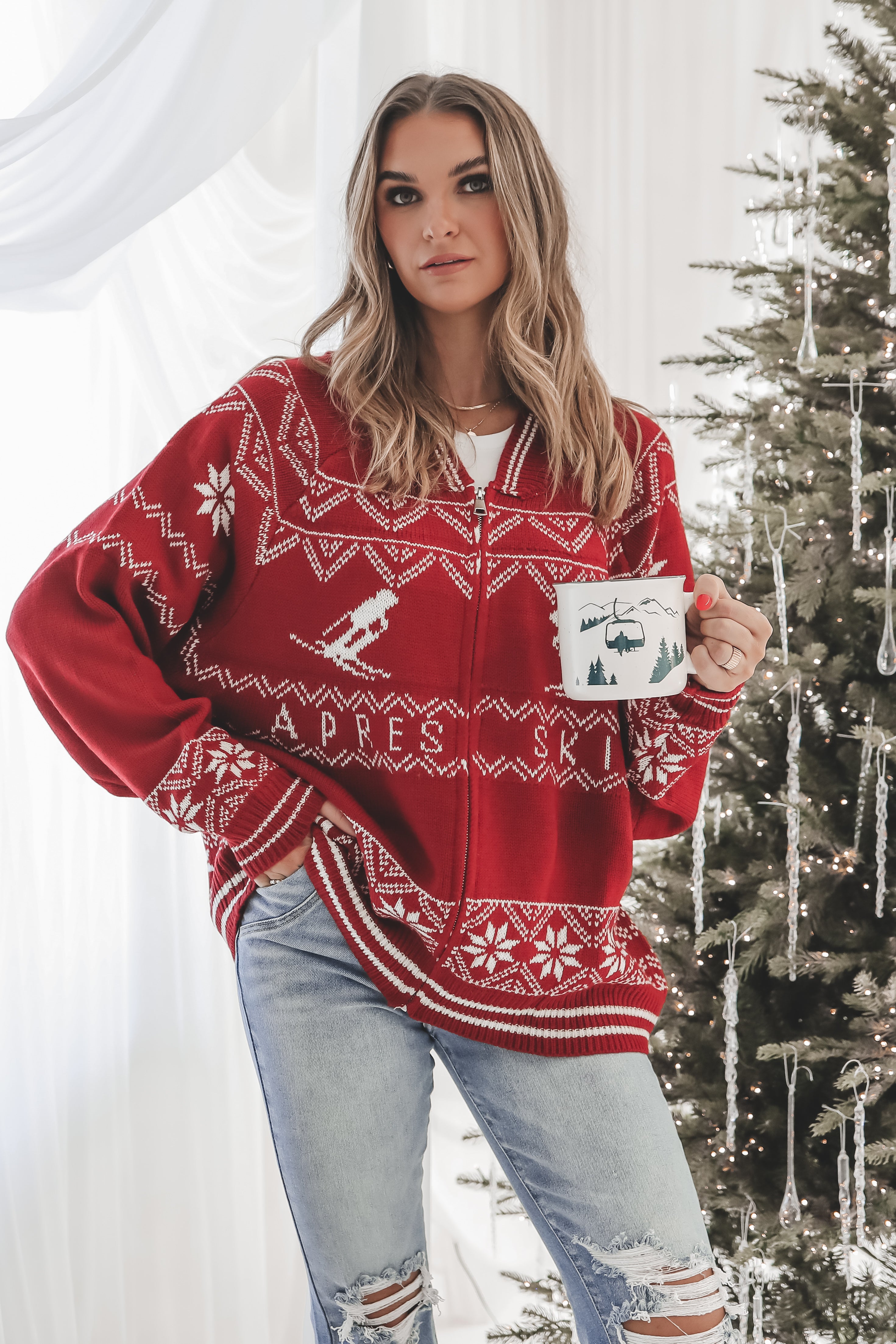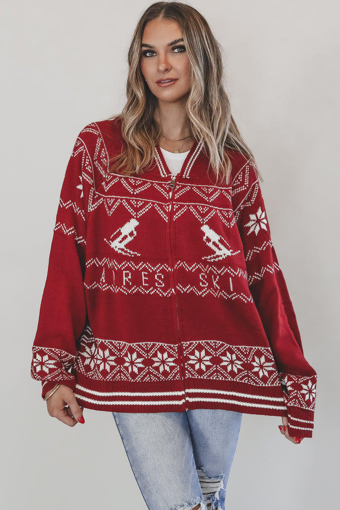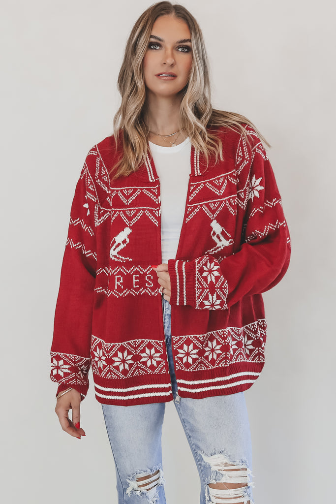 Weekend Getaway Apres Ski Zip Up Knit Cardigan