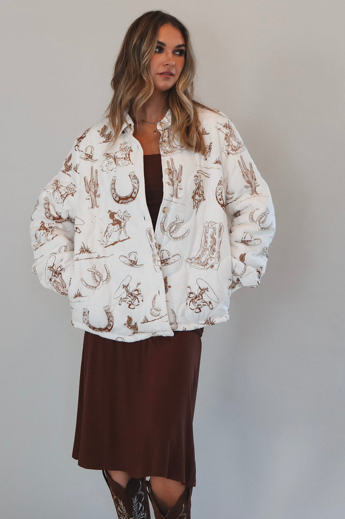 Cozy At The Rodeo Quilted Western Pattern Jacket Shacket