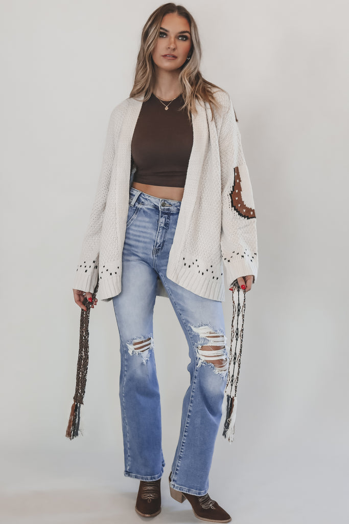 It’s giving…country chic obviously!! The cutest fall cardigan with a country girl flare.