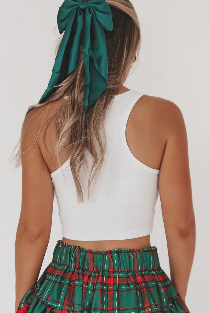 • White graphic tank, HOWDY SANTA on front, back is blank