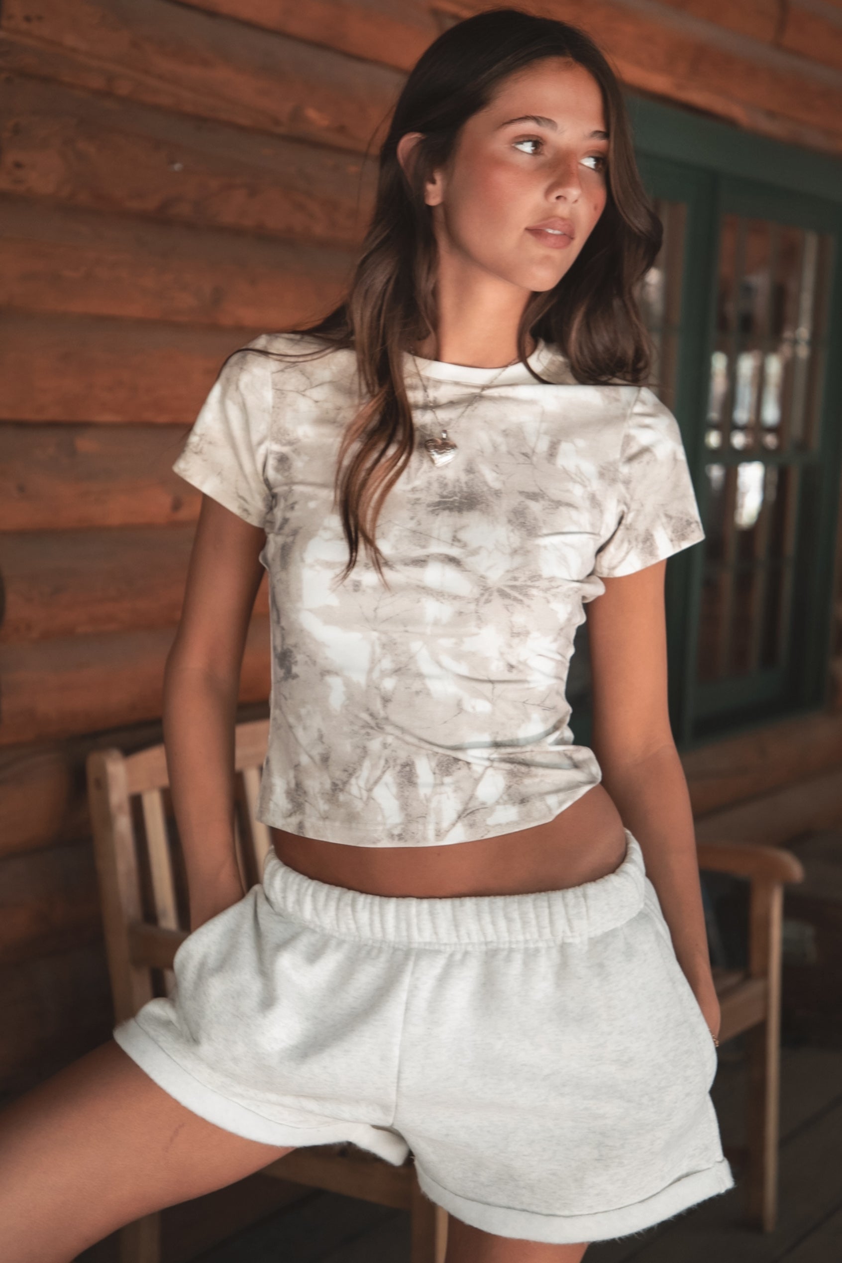 - Light Woodland Camo Jersey Baby Tee High Round Neckline