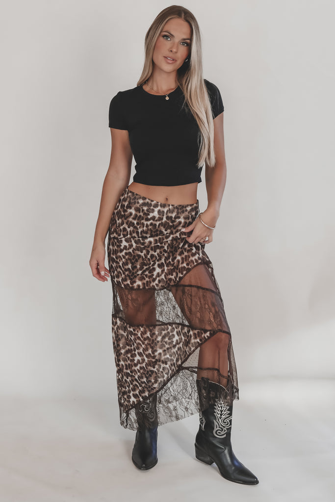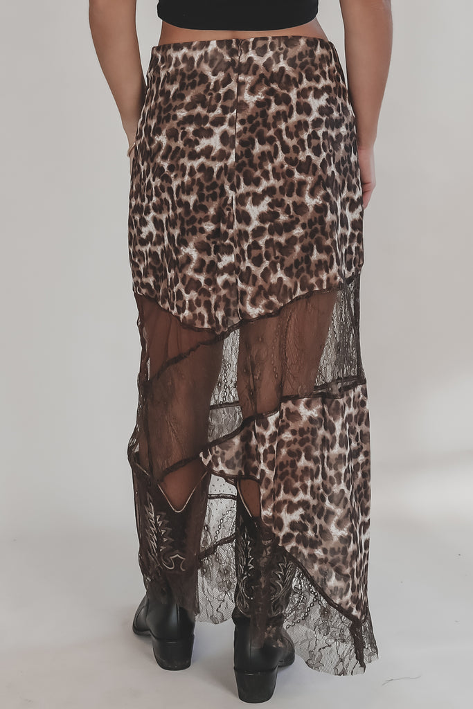 Wild With A Lacy Side Leopard Maxi Skirt