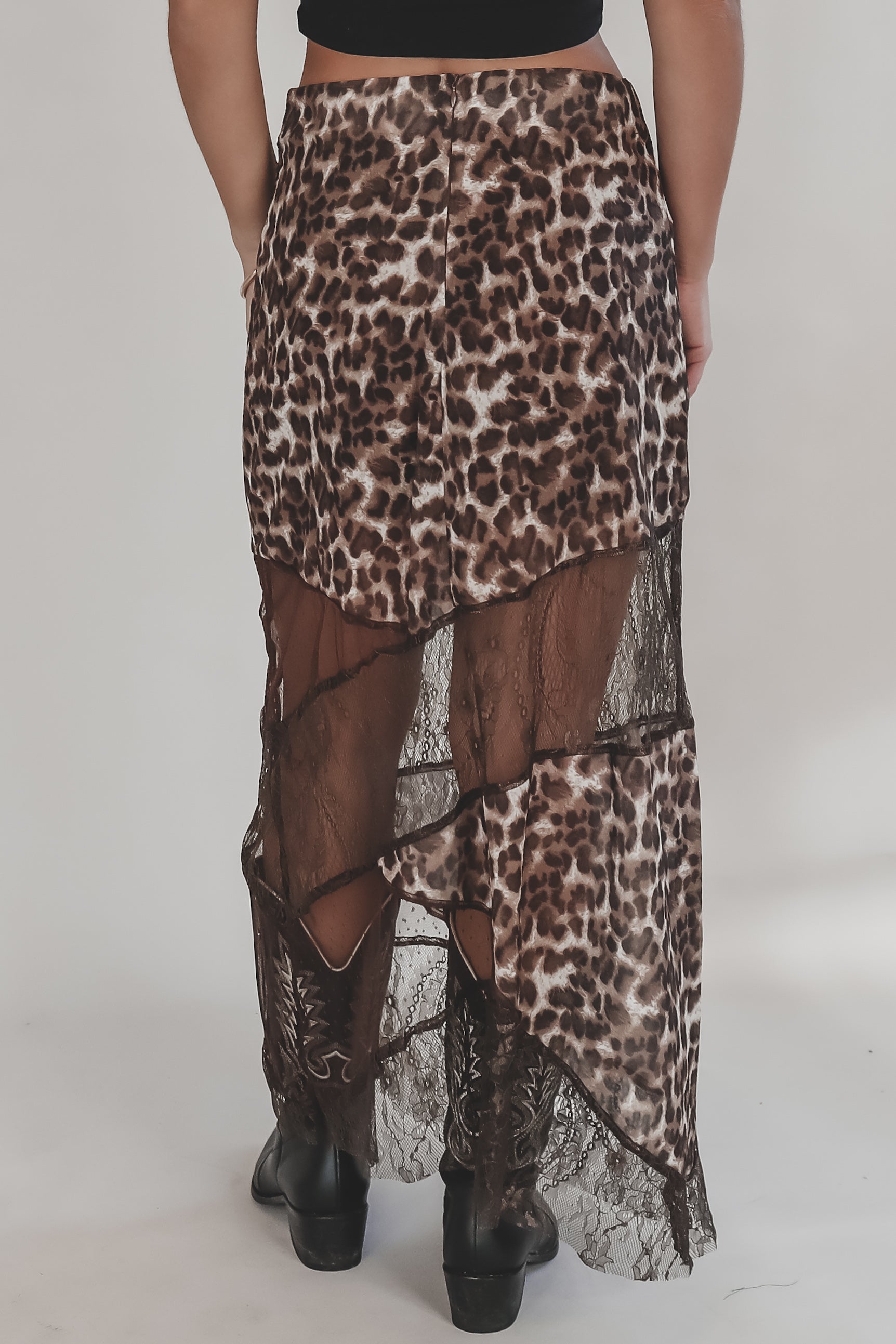 - Leopard and brown lace maxi skirt