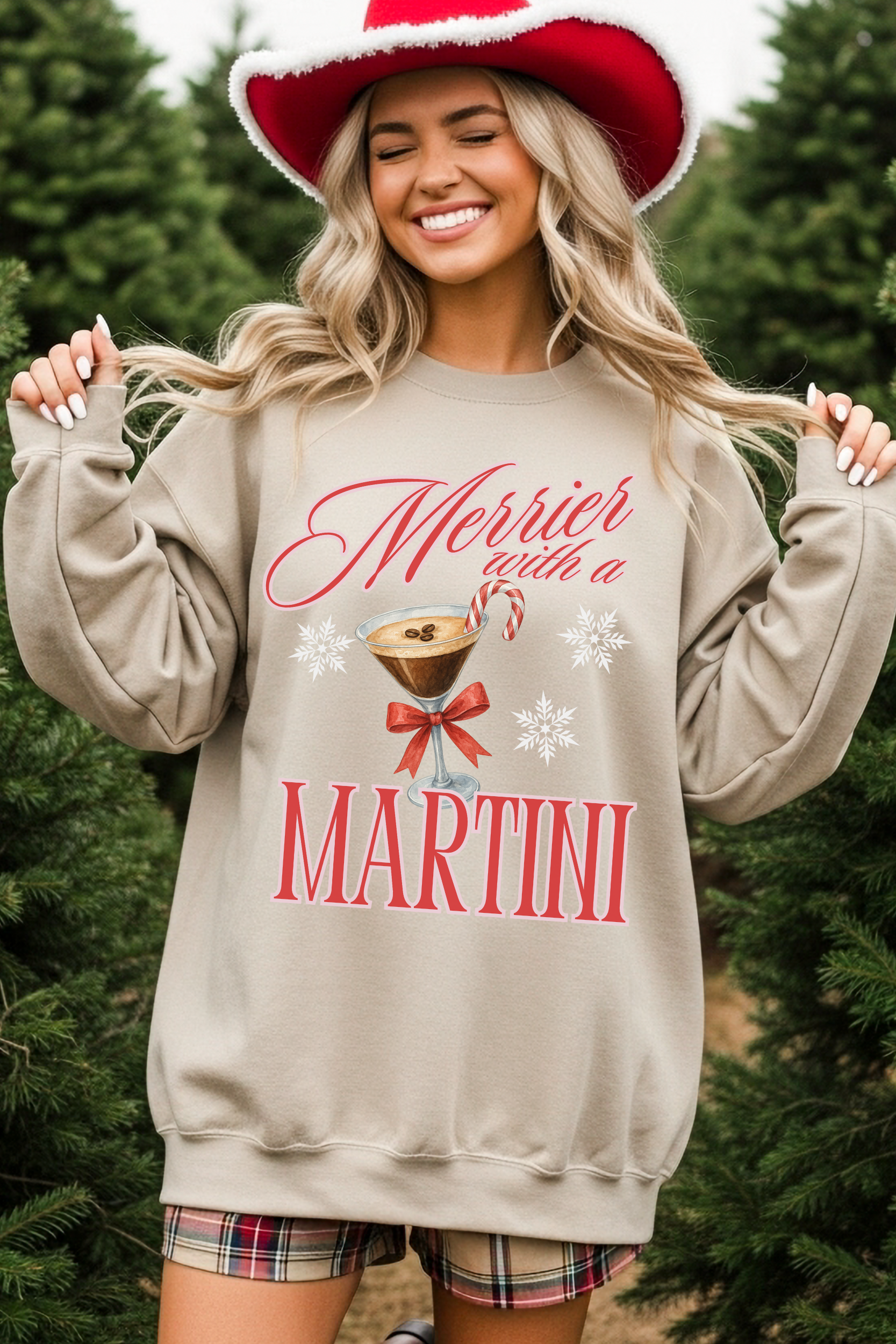 Merrier With A Martini Christmas Crewneck Sweatshirt